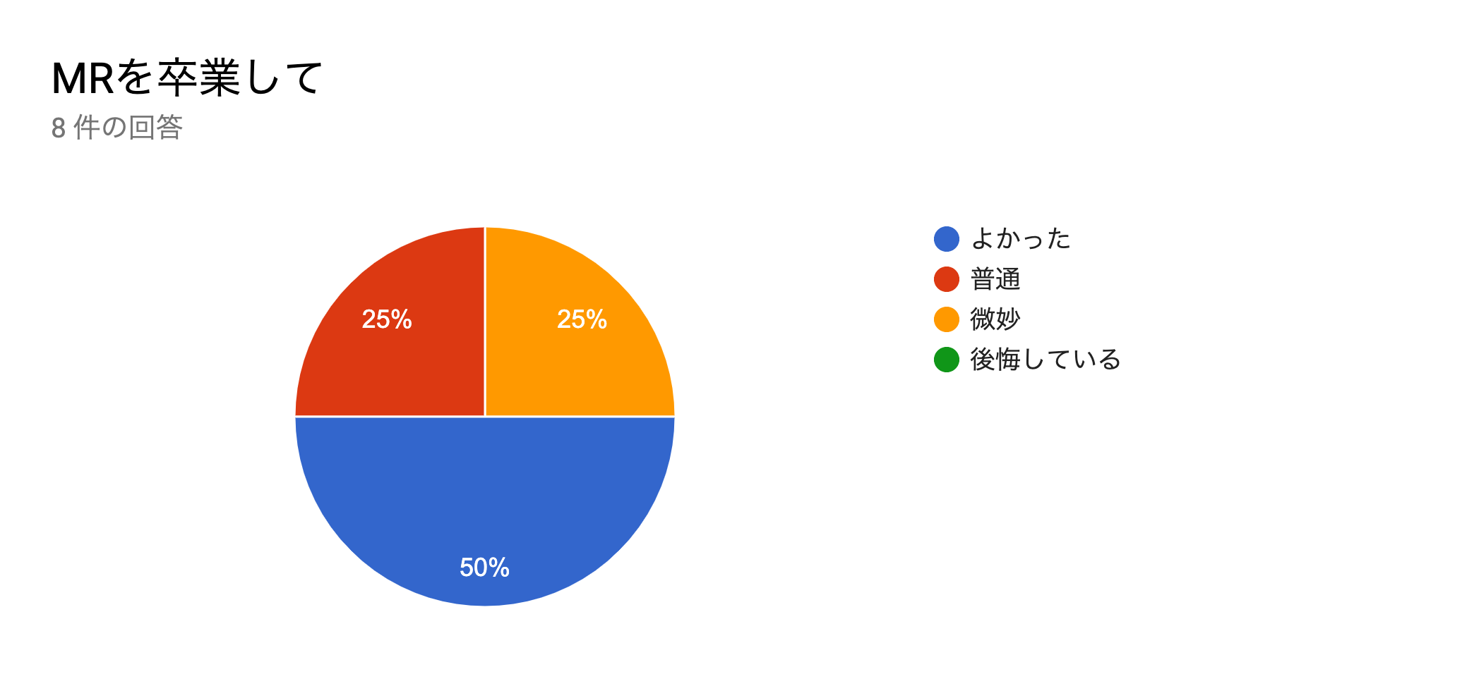たった8人なので、グラフにしても何ですけど、4人が良かった、2人が普通、2人が微妙とのことでした。たった8人だけですが、半数が良かったと思っているとのことです。