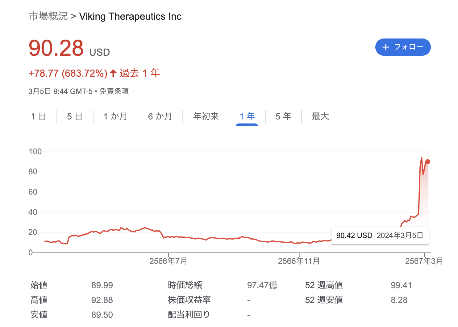 Vikingという会社のGLP-1の肥満薬がP-2で好成績を示して、株価が爆上がりした。肥満薬は今後数社かなり参入する。肥満薬の治験結果だけで、株価が上がる。