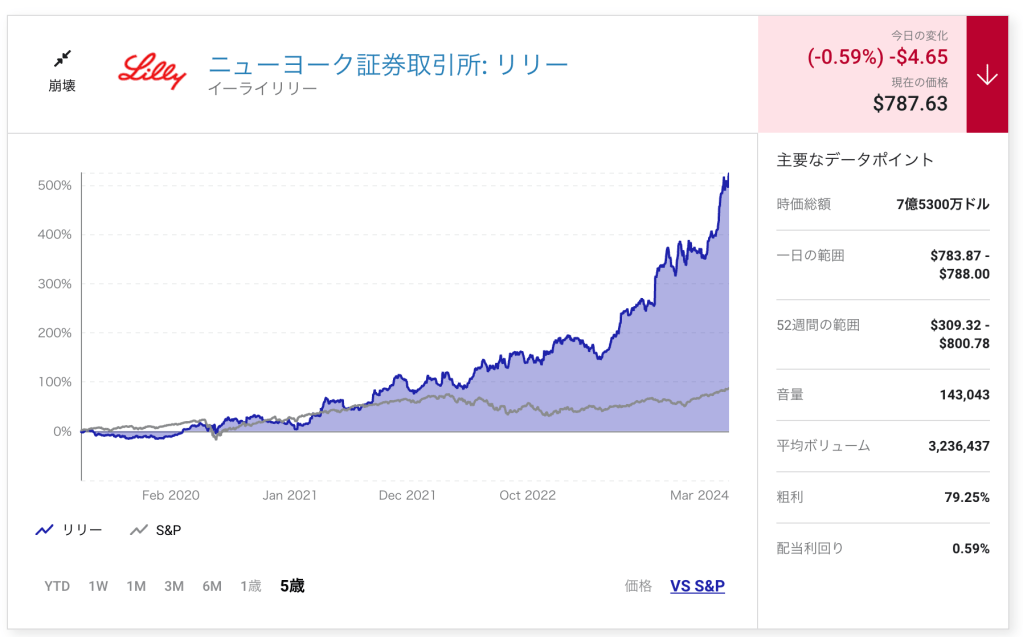 まさか、2022年から、リリーの株価が3倍以上になるなんて、誰も考えられなかったですよね。ただでさえ値嵩株だったのに、それが3倍ですよ。わからんですよねー。それだけ、この肥満の薬というのは株をあげやすいのですね。