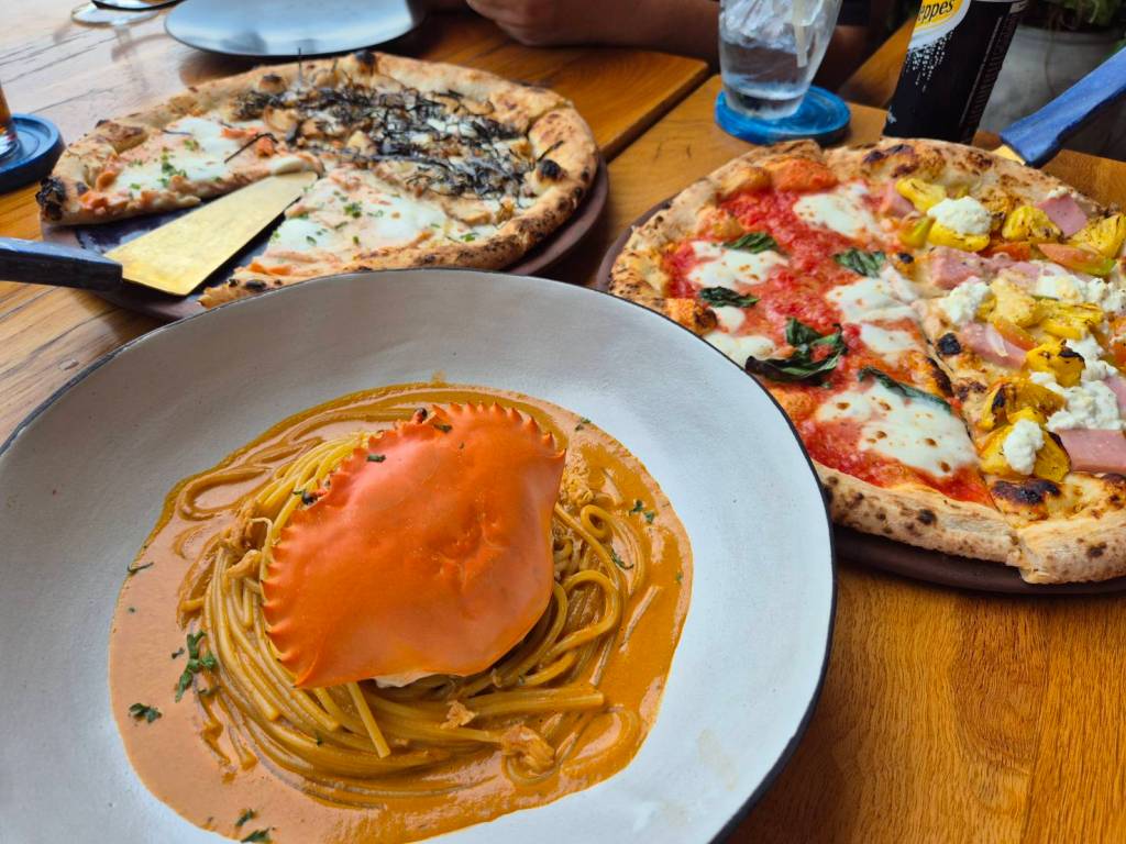 ベトナムに数店舗あるPizza 4P’s。プノンペンにもありました。このソフトシェルカニ味噌パスタみたいなのはオススメです。