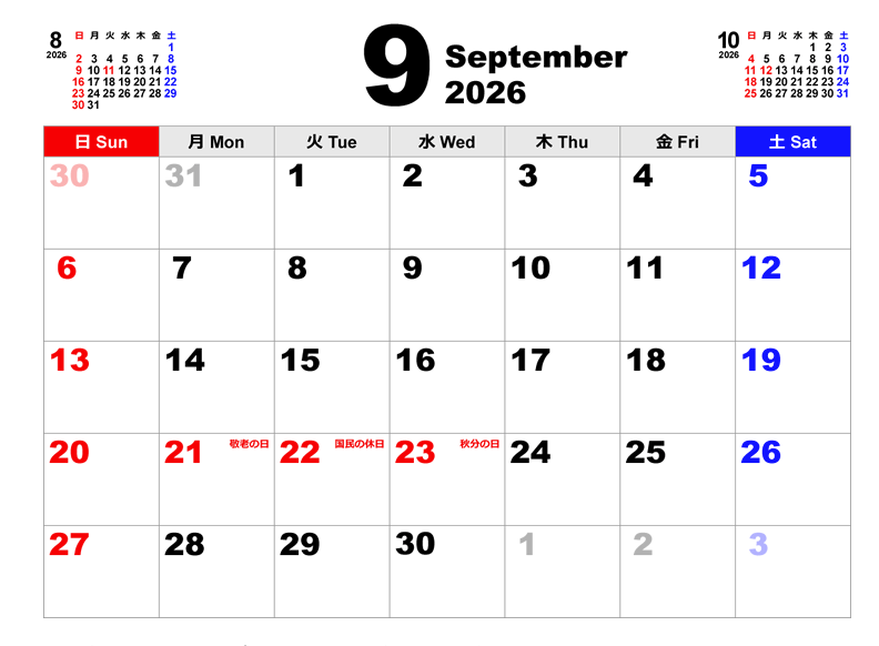 来年は、9月の24日(木曜日)と25日(金曜日)を有給休暇にすれば、9連休です!